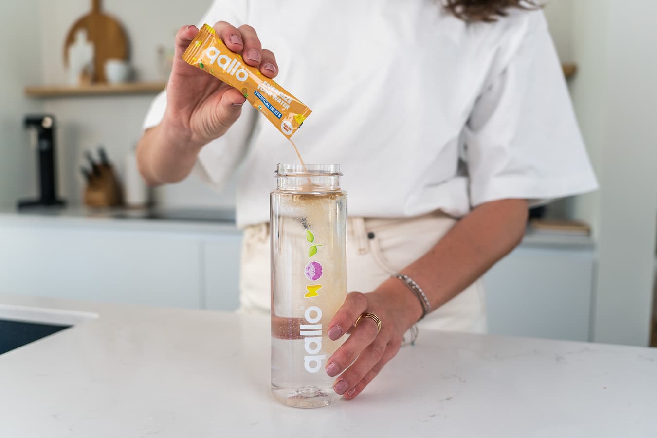 Mix a sachet or scoop Qallo with the water