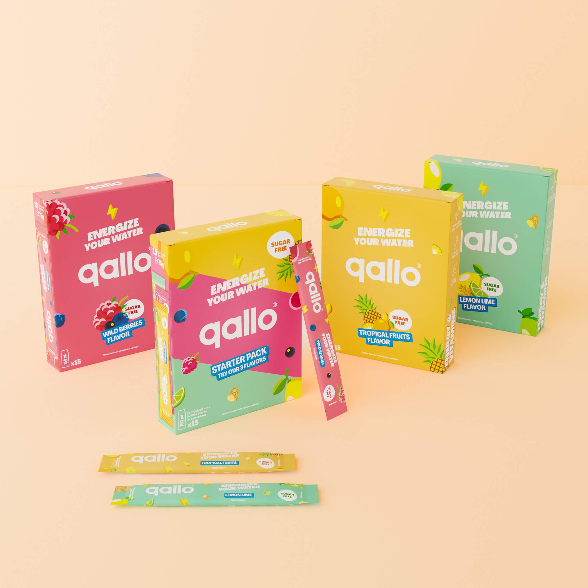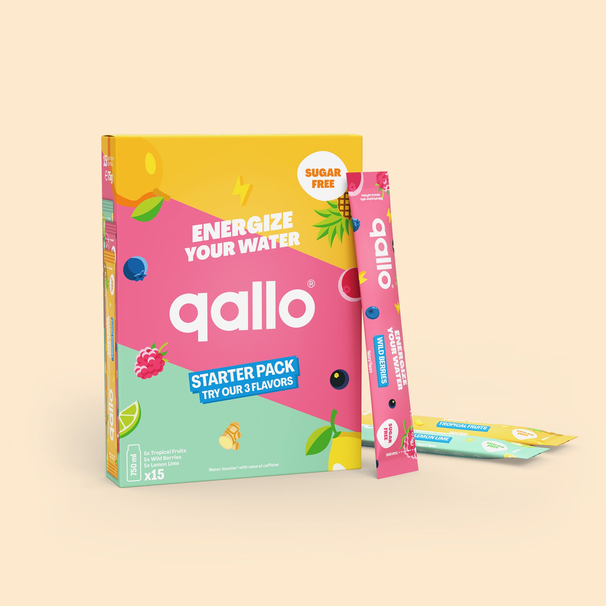 Qallo geeft je water een heerlijke, fruitige smaak en gezonde energie. Ons poeder is suikervrij, vegan en boordevol natuurlijke fruit- en plantenextracten. Perfect voor een gezonde en verfrissende boost op een slome dag. Eén portie (5g poeder) bevat 80 mg natuurlijke cafeïne uit guarana, groene thee, ginseng en 8 verschillende B-vitamines.