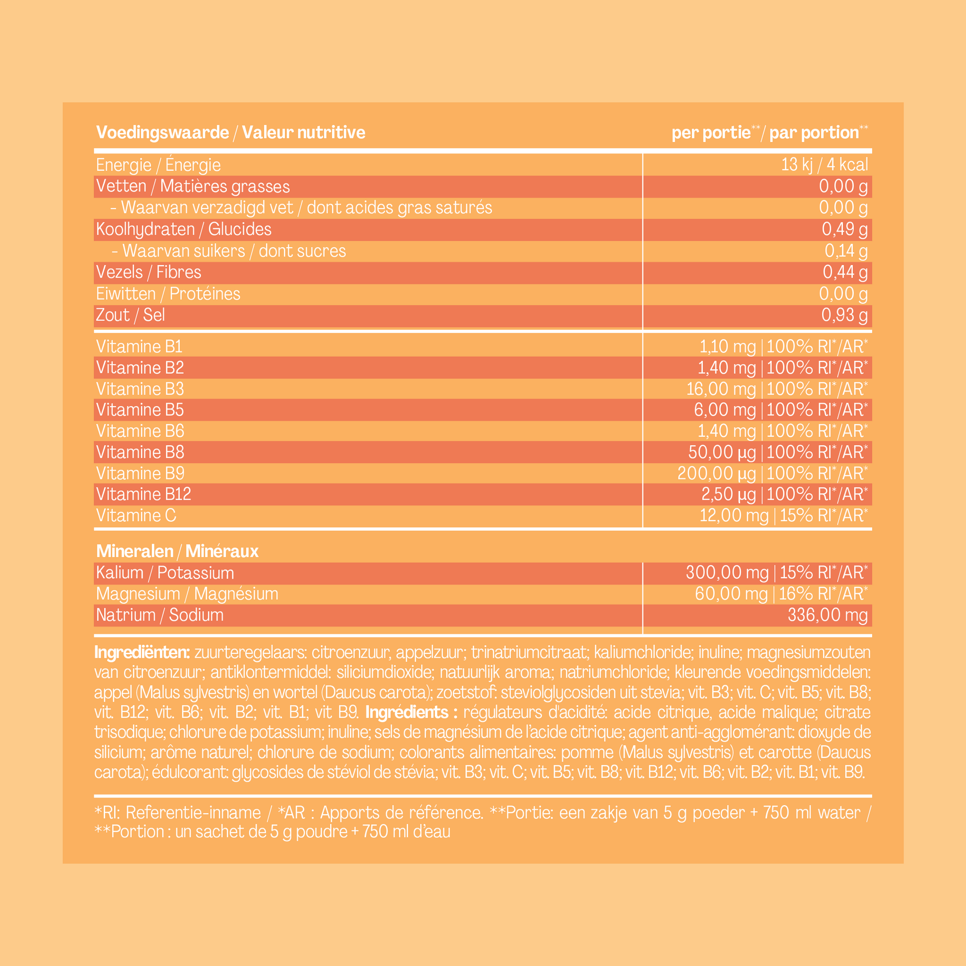 Voedingssupplementen zijn geen vervanging voor een gevarieerde, evenwichtige voeding of een gezonde levensstijl.