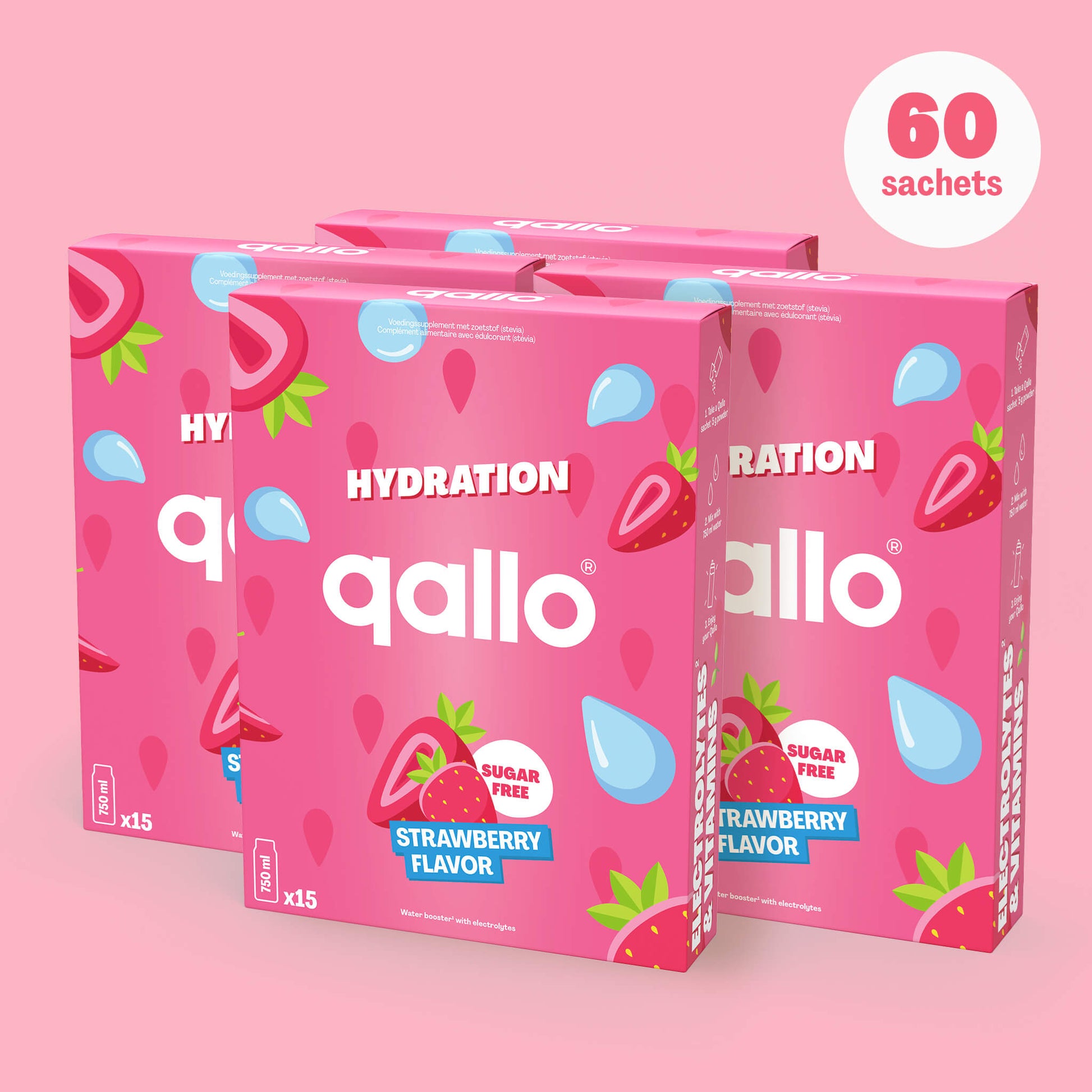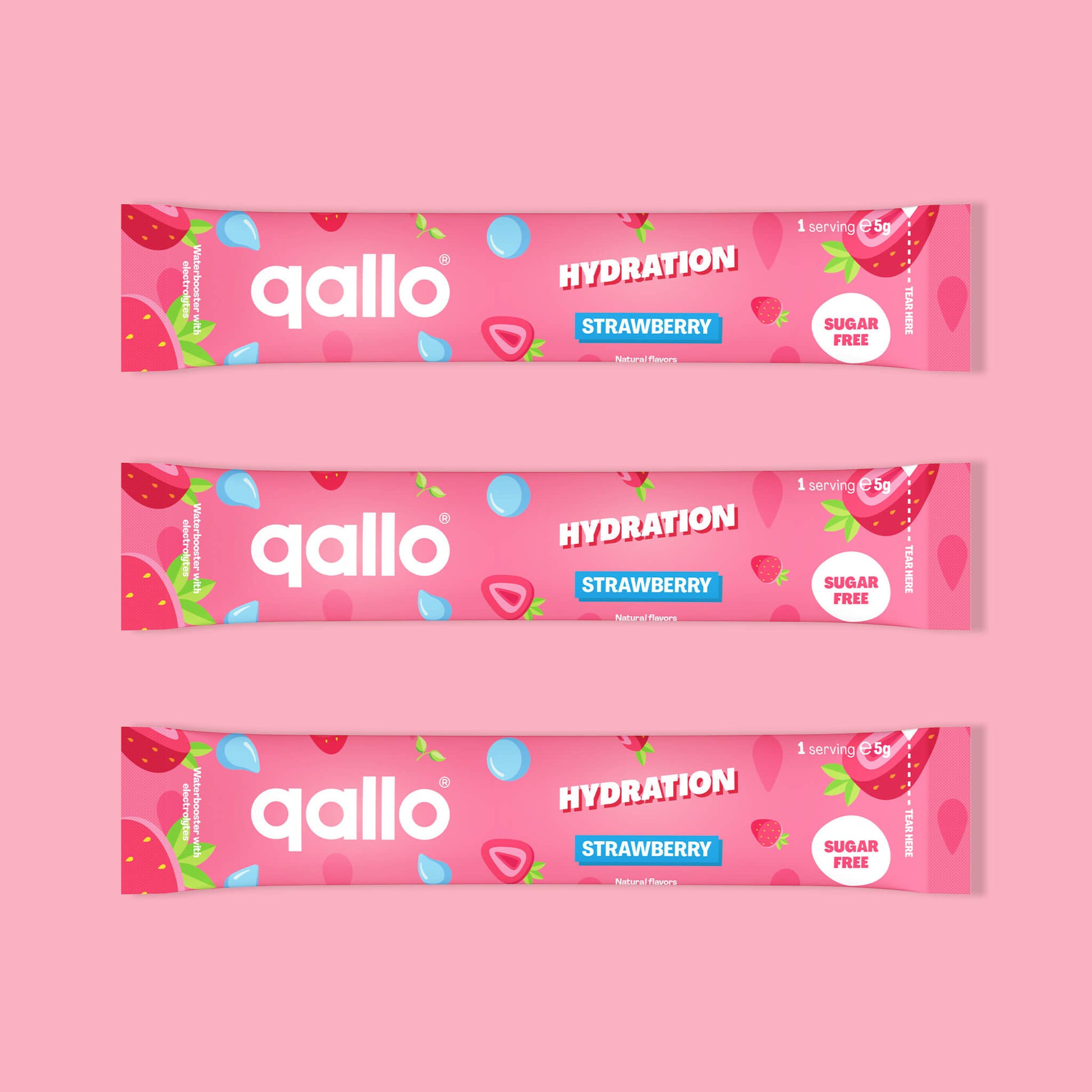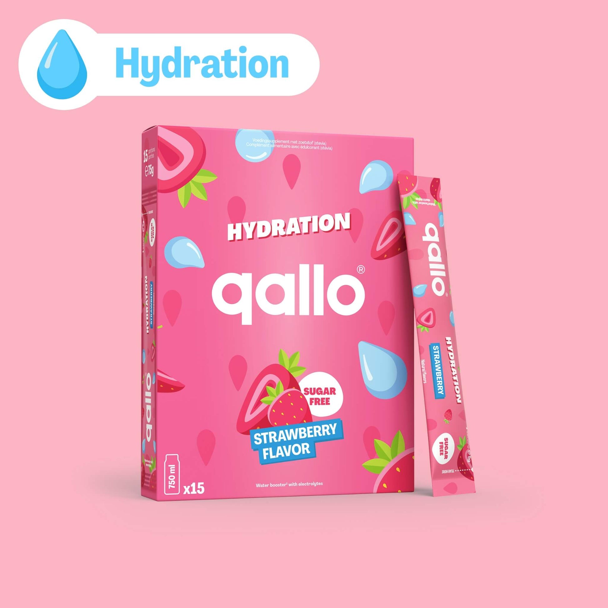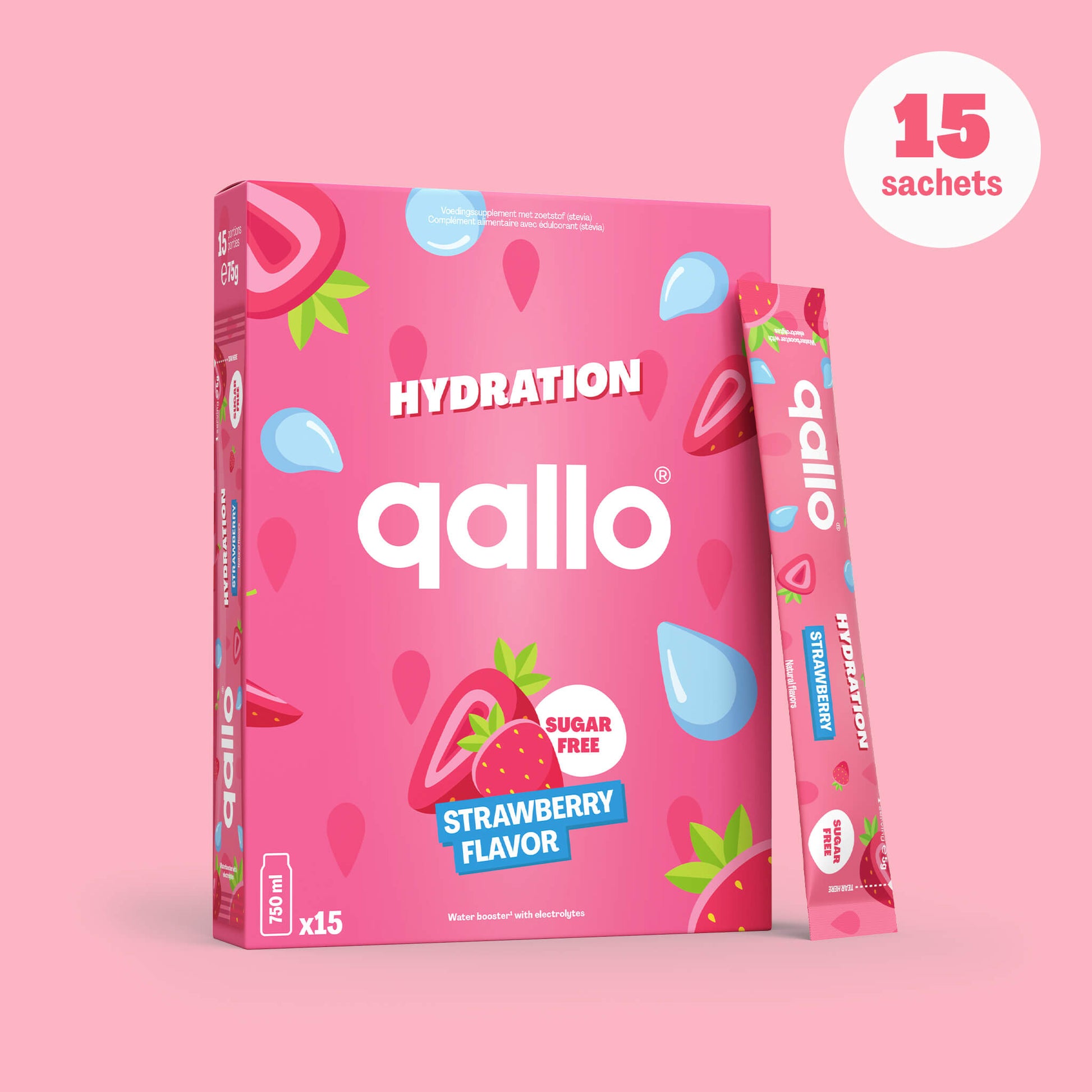 Drink meer water met onze zoete, verfrissende aardbeiensmaak. Qallo Hydration helpt je moeiteloos gehydrateerd te blijven. Boordevol elektrolyten, fruitextracten en vitamines B en C.