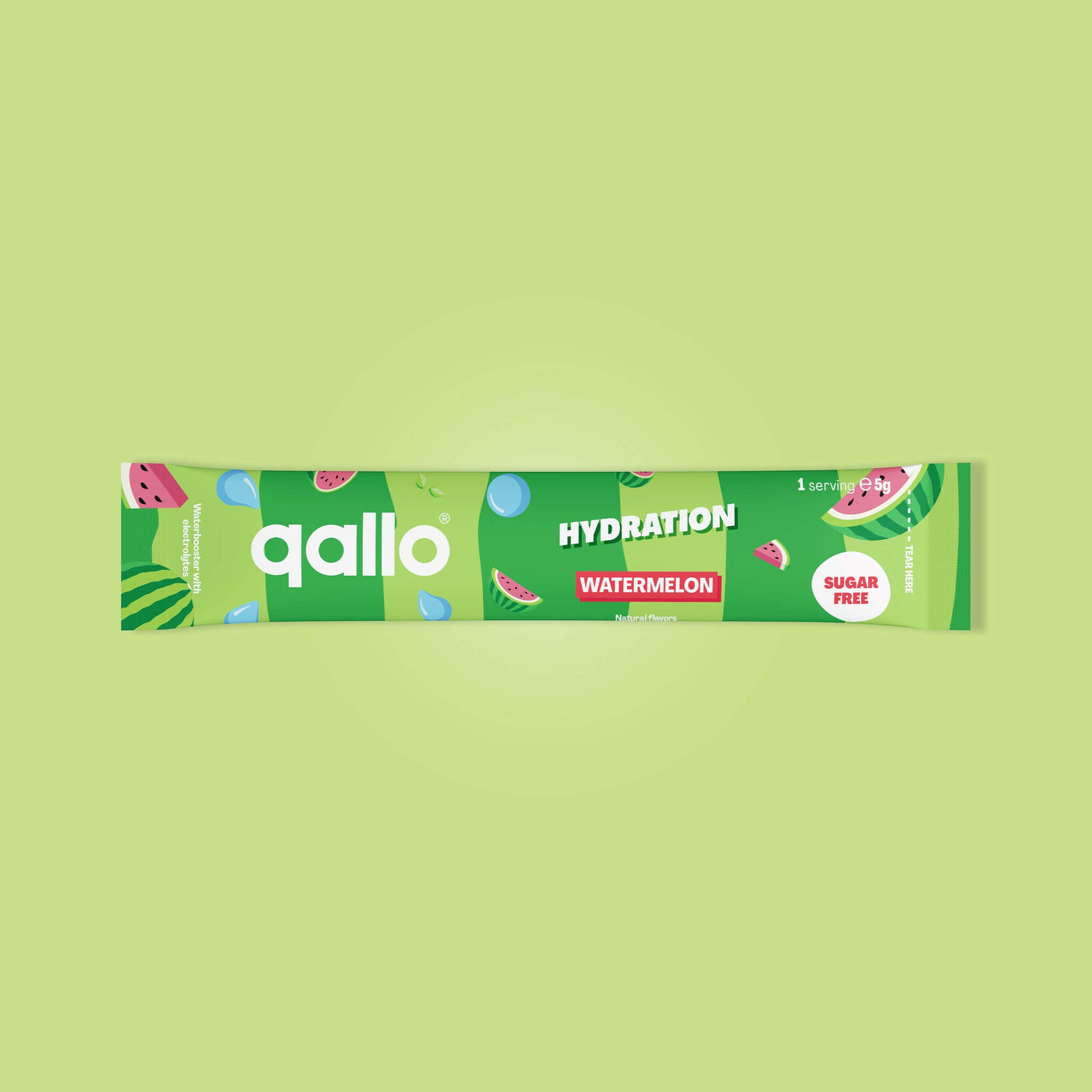 Drink meer water met onze verfrissende watermeloensmaak. Qallo Hydration helpt je moeiteloos gehydrateerd te blijven. Boordevol elektrolyten, fruitextracten en vitamines B en C.
