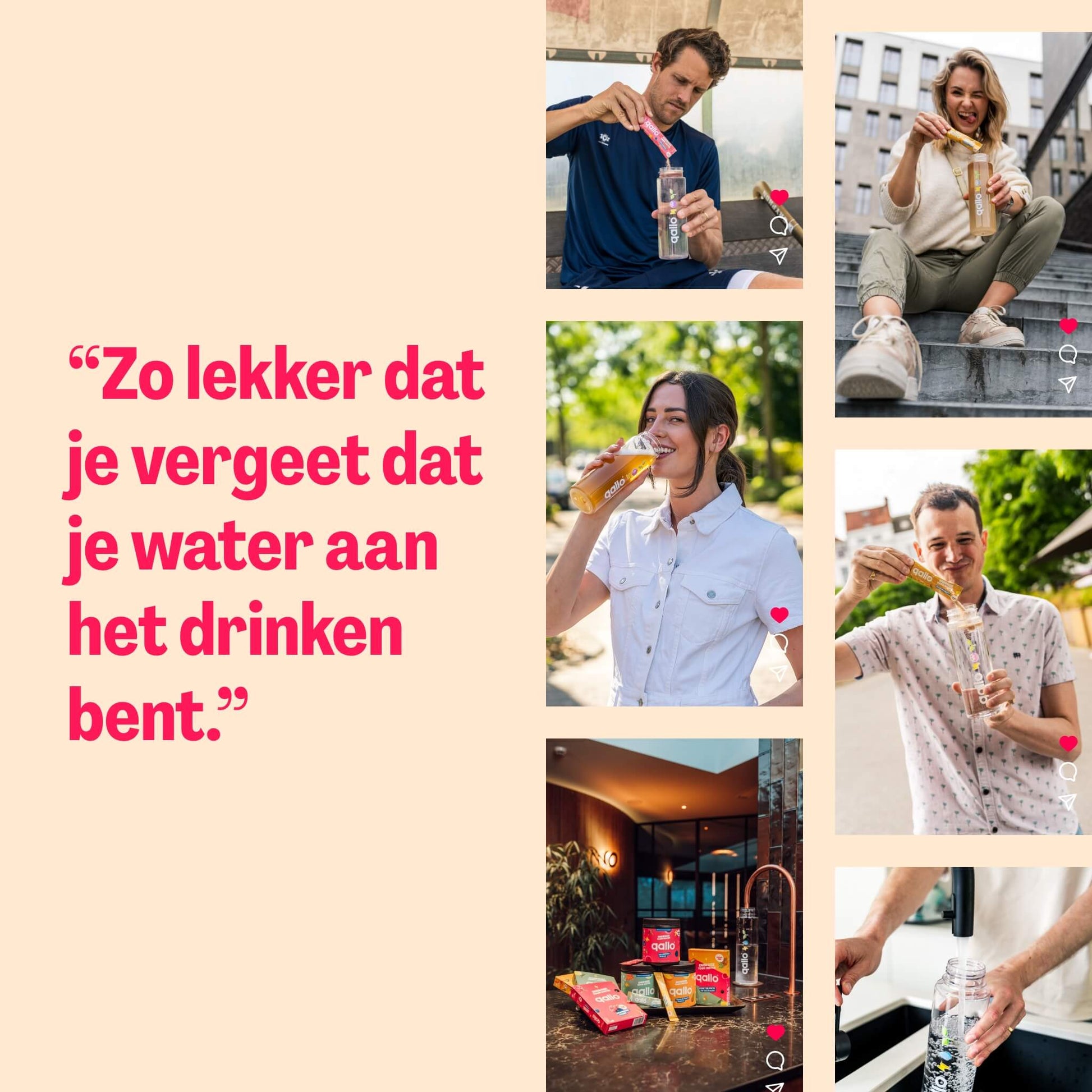 Je kan Qallo drinken in de ochtend, doorheen de dag, tijdens een nachtdienst of gewoon wanneer je dorst hebt. Zeker handig op warme dagen, tijdens het sporten of wanneer je net dat tikkeltje extra hydratatie nodig hebt.