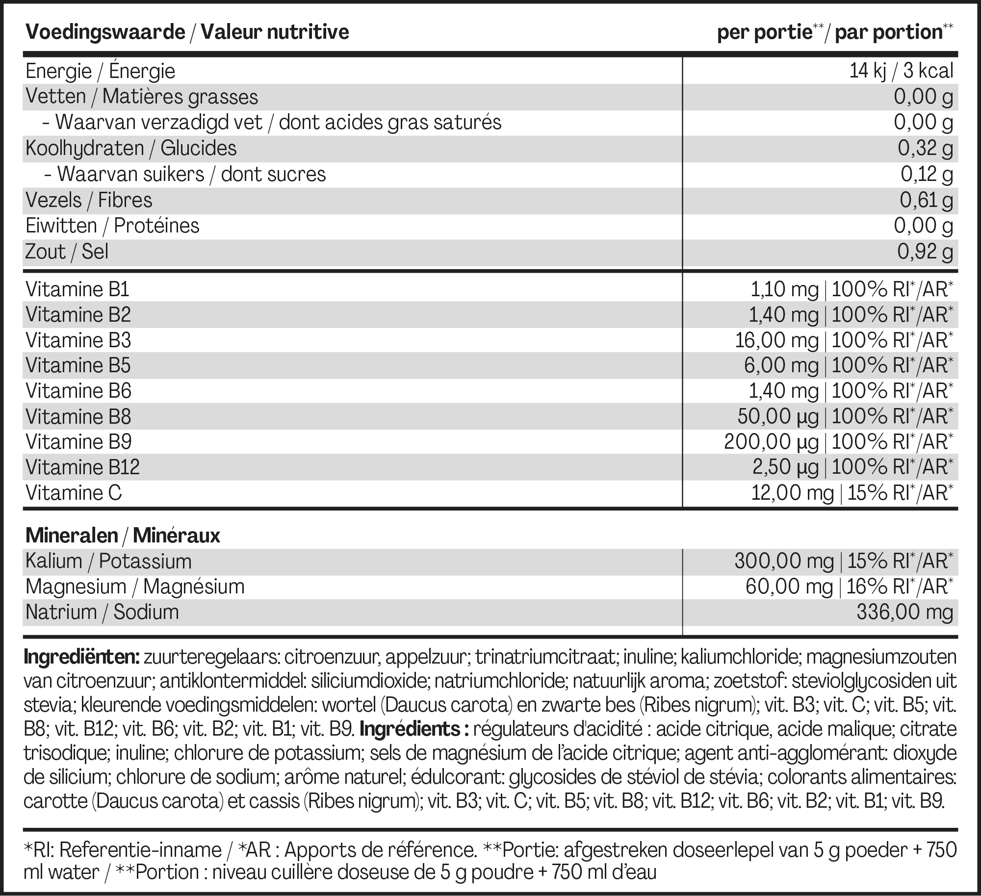 Suggested use: Mix one scoop (5 g powder) with 750 ml of water. Shake before use.